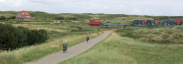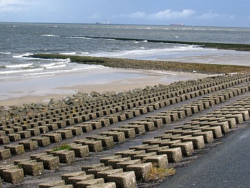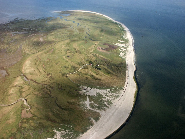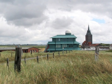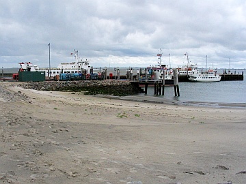 Am nächsten Tag war ein Flug über die ostfriesischen Inseln von Wangerooge bis Borkum geplant. Starker Westwind und Wolken haben uns dann aber veranlasst, zunächst mal einen ausgedehnten Spaziergang über den westlichen und südlichen Teil der Insel Wangerooge zu unternehmen. Es ging zum Westturm und von dort weiter zum Fährhafen an der Südspitze der Insel. Die letzten Meter vor dem Westturm wurden in einem Regenschauer zurückgelegt, der starke Ähnlichkeit mit einer Dusche hatte. Glücklicherweise konnte man sich im Turm unterstellen. Bald jedoch konnte es weiter gehen. Der kräftige Westwind sorgte dafür, dass die völlig durchnässten Hosen innerhalb kurzer Zeit wieder trocken waren.