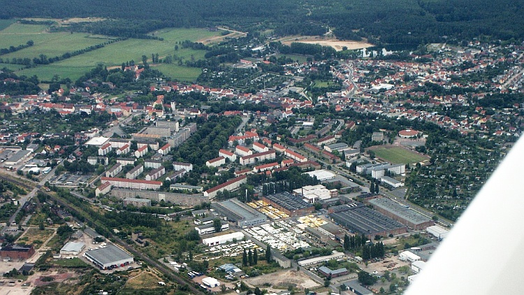 Die Flugstrecke führte nun südlich an Bremerhaven vorbei, über Soltau, über die Militärgebiete der Lüneburger Heide, Wolfsburg und Magdeburg. Ab Coswig hatten wir noch mit leichtem Regen zu tun, was aber hier kein Problem mehr war.