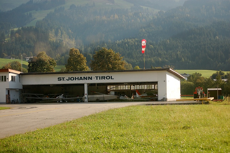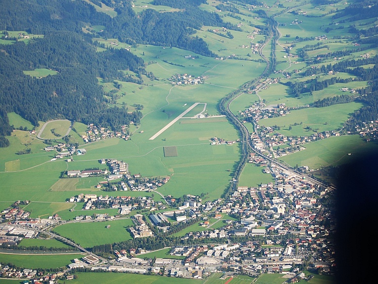 Nach dem Überflug der ersten Bergkette war der Blick in die Täler frei. Nach kurzer Zeit war auch St. Johann mit unserem Zielflugplatz in Sicht, der Abstieg konnte beginnen. Der zweite Landeversuch klappte dann auch problemlos, nachdem aufgrund einer Fehleinschätzung im abschüssigen Gelände der erste Anflug noch aus zu großer Höhe erfolgte. Die Maschine wurde abgestellt und das freundliche Personal am Flugplatz konnte uns trotz hoher Belegung wegen des örtlichen Knödelfestes noch eine nette Unterkunft vermitteln. Das Hotel gehört einem Fluglehrer des hier ansässigen Vereins.